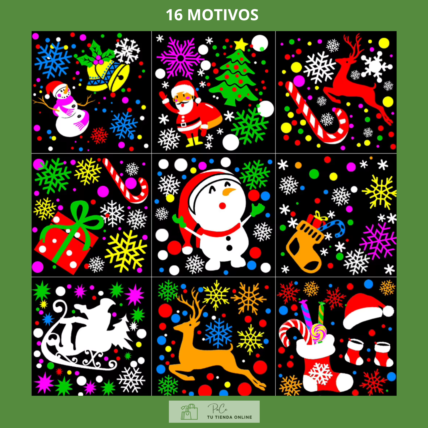 🎅 16 Motivos Navideños Diferentes, desde copos de nieve hasta renos y Santa Claus.